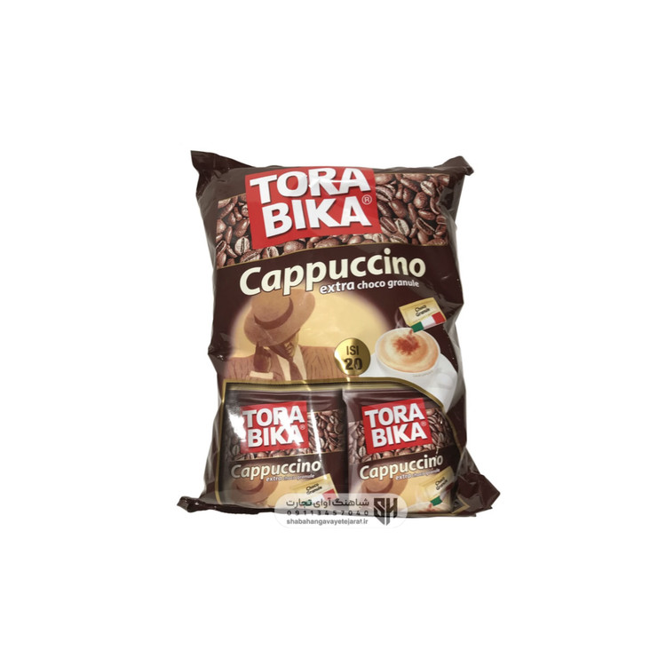 کاپوچینو تورابیکا در بین پودرهای فوری کاپوچینو یکی از شناخته ترین و پرفروش ترین کاپوچینوهای میباشد. این محصول حاوی Extra Choco Granule می باشد که در کنار هر ساشه یک پودر گرانول کاکائو 2 گرمی قرار دارد، که شما میتوانید آن را به کاپوچینو خود اضافه کنید. بعد از حل کردن پودر، بسته Choco Granule را نیز به آن اضافه کنید تا کاپوچینوی فوریتان، طعم دلنشینتری پیدا کند.