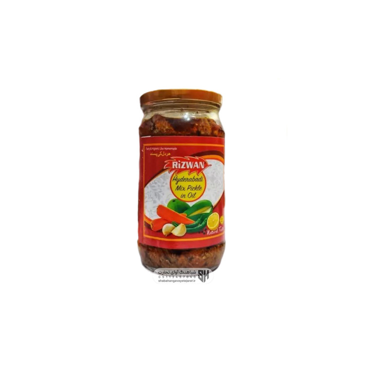 این محصول یک شیشه ترشی مخلوط در روغن از برند Rizwan است. این ترشی شامل ترکیبی از سبزیجات مختلف مانند هویج، سیر، فلفل و لیمو است که در روغن و ادویههای مخصوص تهیه شده است. این نوع ترشی به دلیل طعم تند و ترش خاص خود، محبوبیت زیادی در آشپزی هندی و پاکستانی دارد و معمولاً همراه با برنج، نان یا غذاهای گوشتی سرو میشود.